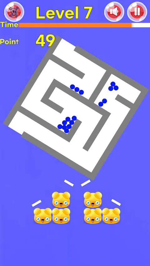左右转动迷宫,用蓝色球击中果冻角色。 当您将它们全部摧毁时,您可以进入下一个级别。 ● 一部分广告收入用于慈善事业