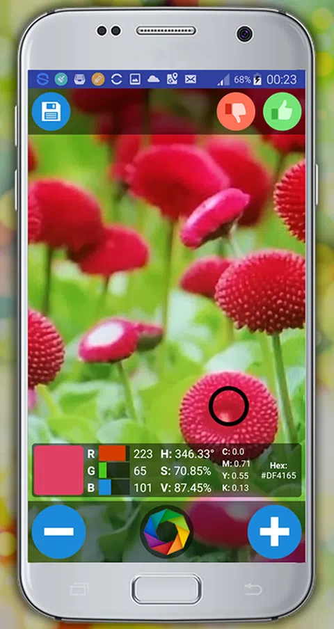 检测每个对象的颜色!按下想要测量颜色的位置,并获取颜色和相应的值。您将获得以下颜色的值: - RGB(红,绿,蓝) - HSV(色调,饱和度,价值) - CMYK(青色,洋红色,黄色,黑色) - 十六进制代码 使用这个应用程序在不同的情况下,找出一个颜色的确切值和数据。这个颜色检测器是为了便于处理而创建的你可以很快地检测到每一种颜色。以屏幕截图保存图像并存储您的测量信息。有了这个颜色探测器,你可以惊喜你的朋友和家人。获取有关颜色的信息