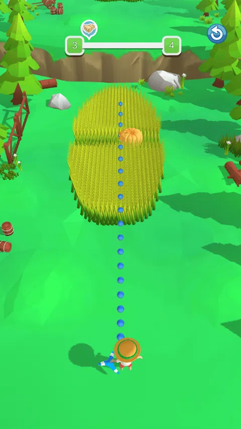 你只需要调整角度,让回旋镖剪掉杂草。当然,你需要注意避开障碍物。有很多精美的草坪图案等你来挑战