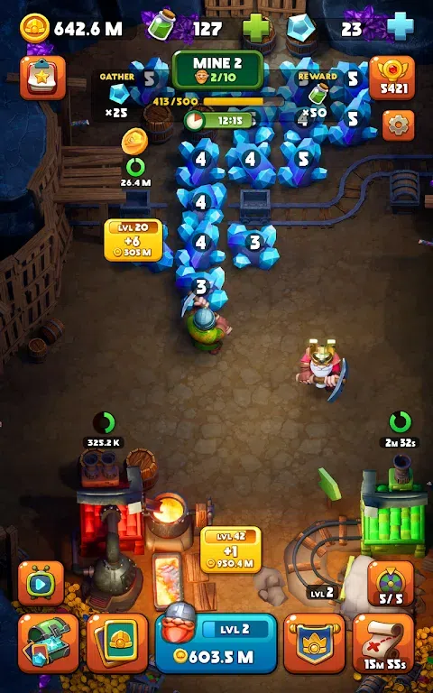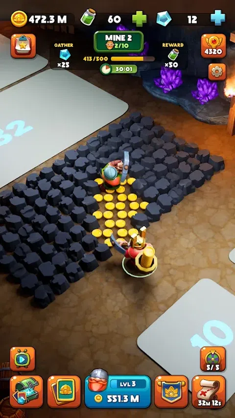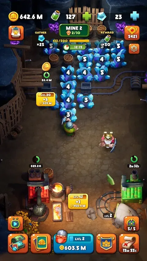 团结矮人淘金者,收集矿山中的所有黄金,获得的宝藏。 你是一个真正的宝藏猎人!黄金和宝石让你热血沸腾!在地牢中搜索黄金矿藏,并建立地下避难所来存储您的宝藏。 挖掘将挖掘的不仅仅是黄金!探索矿山,找到藏在地下的稀有矿物和宝石。这是一款有趣的大亨游戏,可以让您变得更富有。您不必自己下到矿井中 - 派遣您的矮人淘金者!当您忙于思考策略时,它们将为您的无尽财富铺平道路! 建造?地雷和大炮,帮助矮人夺回他们的财富。 团结矮人淘金者并加强他们。 开采宝石和黄金,找到宝藏。 发现?新矿藏并获得更多黄金。 在这个令人难以置信的 3D 矿工模拟器中探索?地牢和大量地雷。 者。找到所有卡牌并解锁特殊能力! 矮人淘金者将三排游戏的元素与被动收入融为一体!团结矮人淘金者,开采黄金、宝石和宝藏,使废弃的矿山恢复昔日的辉煌。矮人淘金者工作队非常有能力 - 你所要做的就是提供工具