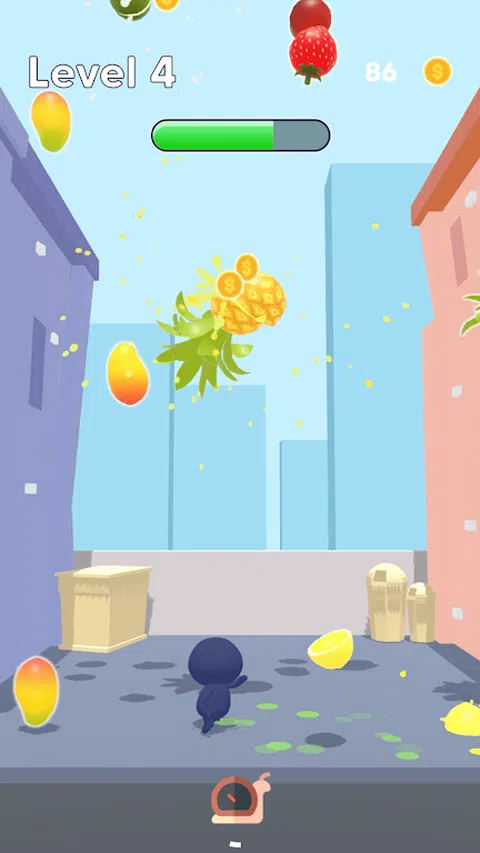 左右移动以将玩家从掉落的水果中拯救出来并点击射击以切割水果