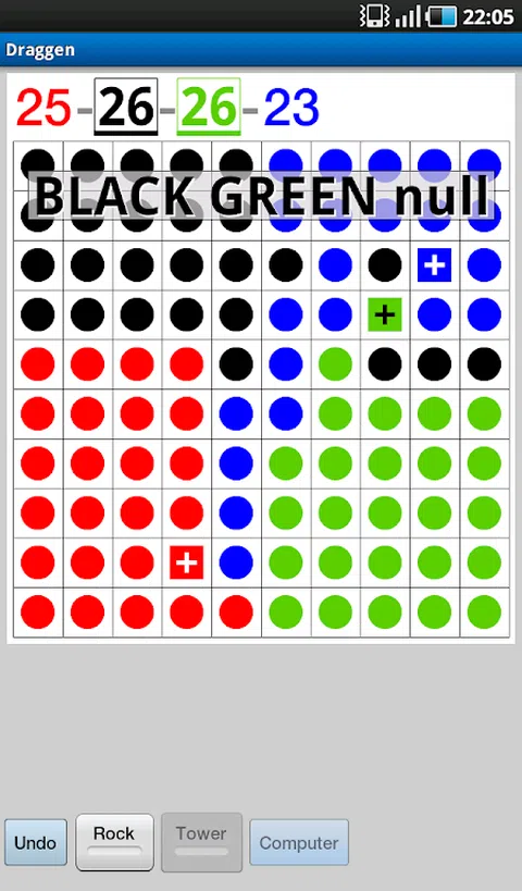 Draken是一种策略棋盘游戏,适合两个,三个或四个玩家(红色,黑色,绿色和蓝色)在无格10x10棋盘上进行游戏。 目的是在将对手棋子围绕在一行或一列上时对其进行捕获。每个玩家一个接一个地放在棋盘上的一个免费盒子里,上面放着其颜色的棋子(或岩石或塔)。 当所有情况都满足时,游戏结束。棋盘上其棋子数量最多的玩家获胜。 德拉肯(Draken)有几种变体:典当,石头或随机放置在开始处的塔-塔。 岩石是无法捕获的灰色特定的棋子。 塔是无法捕获的彩色特定典当。 您可以独自玩耍,也可以与其他人或计算机玩耍。 免费应用程序,无广告