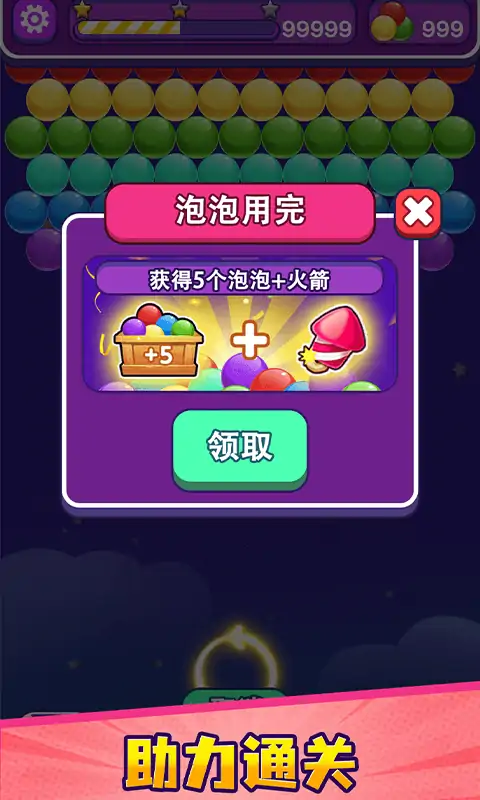 经典的泡泡射手游戏,经典消除游戏全新来袭 ! 爆破所有的泡泡,解救困在泡泡中的小动物们,挑战有趣且丰富的关卡。 在这款全新的泡泡射手中,你需要学会灵活使用炮台去瞄准和射击。点击屏幕,拖动激光瞄准器,射击使所有的彩色泡泡掉落和爆裂。利用道具辅助,突破种种难关,解救出所有的小动物,收集更多的星星。 游戏特点: - 拥有惊人的图形和关卡! - 根据每一个关卡目标和泡泡布局来制定射击策略! - 拥有所有的泡泡图鉴,遇到不认识的泡泡可随时查阅! - 无需连接WiFi,随时随地体验劲爆射击游戏体验! - 清除屏幕,克服挑战,实现目标。 - 非常过瘾,一旦开始就根本停不下来。 请做好准备,瞄准、弹出!现在下载!来一场全新的泡泡之旅吧!