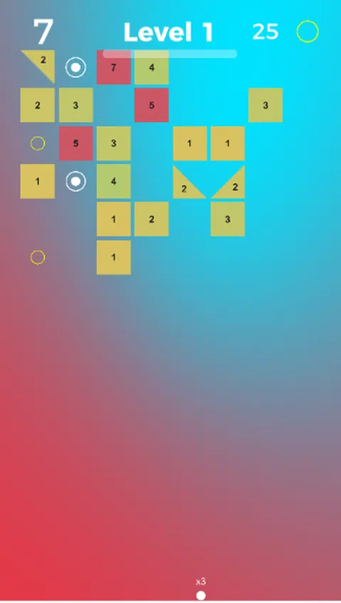滑动手指并射击球以打破砖块。尽可能地打破砖块,在它们到达之前打破它们