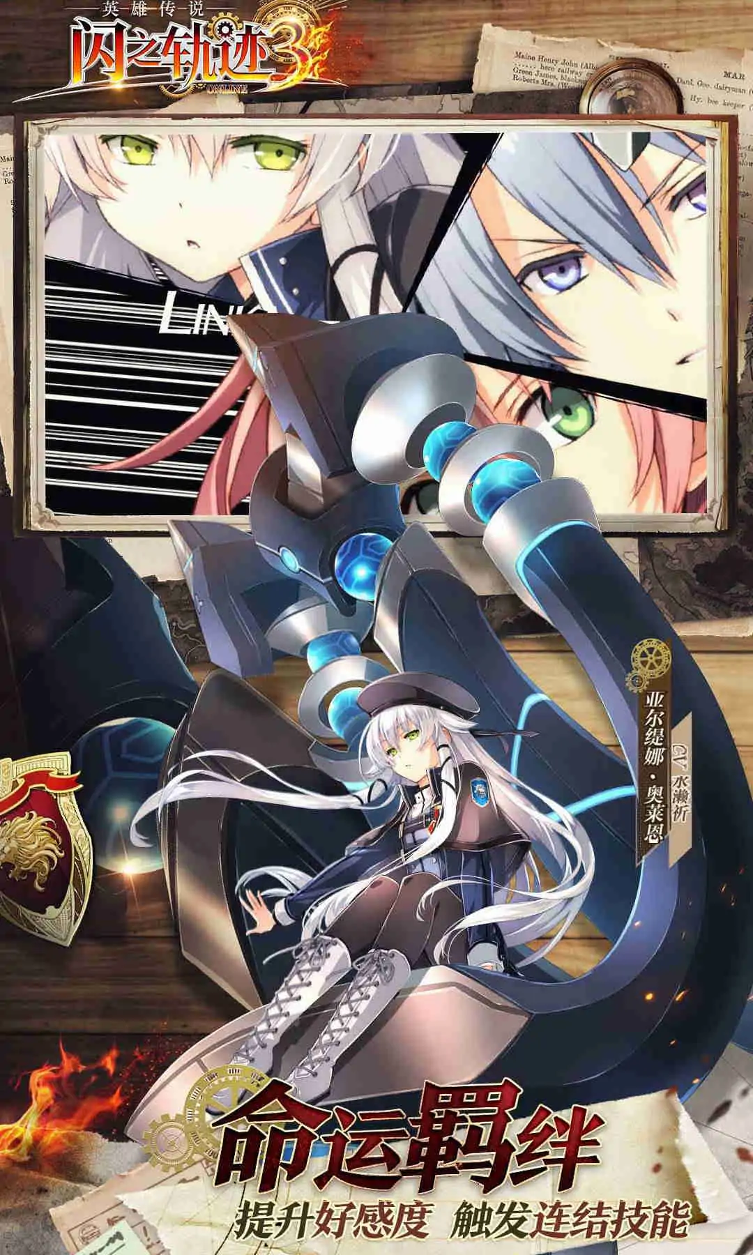 “英雄的传说,从这里开始……” 由Falcom正版授权,根据超人气日系RPG“轨迹系列”主机游戏改编的3D回合制手游《英雄传说:闪之轨迹3》终于登场! 故事发生在一个正处于巨大变革的动荡时代中,导力革命带来现代化的同时,也推动了世界格局的剧烈变化,国家与国家之间的博弈,愈发波诡云谲、变幻莫测。面对这样的局势,新人教官黎恩·舒华泽带领着学生与过往的伙伴,将怎样平息敌对势力,使世界恢复和平? 【Falcom正版授权——经典RPG呈现】 本作继承了单机版宏大的世界观及精细剧情故事,并加入了全新的尝试,满足情怀的同时,也能拥有更好的游戏体验!作为第二分校的新生,你将在教官黎恩的指引之下,与新Ⅶ班、旧Ⅶ班的伙伴们一起,凭藉团结、勇气、热血与友情,在帝国各处游历冒险,平复危机! 【多元战斗——策略搭配强劲出击】 标志性AT顺位系统,让过程尽在掌控!玩家可随时根据战场形势调整伙伴阵容,特定角色独有的超酷炫S-Break爆发技,电光火石畅快连击,全方位压制敌人! 【英雄养成——获取伙伴集结新Ⅶ组】 “黎恩”、“悠娜”、“库尔特”、“亚尔缇娜”在内的闪轨3系列角色均将悉数登场,玩家可将英雄收藏至阵容中进行培养,亦可灵活组队及操控,打造最强作战小队! 【命运羁绊,丰富社交建立深厚情谊】 创新性的“羁绊连结”,使原本枯燥无味的社交再添乐趣!羁绊可在玩家与玩家,玩家与角色,角色与角色中产生,有羁绊关係则可通过礼物赠送和共同战斗提升羁绊度,从此命运与共! 【声临其境,原班声优阵容还原经典】 原班CV倾情献声,将主机游戏中数百小时的超长剧情在手游中得以还原。每一段精彩的对白,每一幕感动的瞬间,将带给你最沉浸的视听享受!