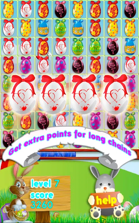 复活节快乐!在这个美丽而激动人心的三消游戏中寻找复活节彩蛋。 Easter Eggs Match 3 是复活节假期的游戏,对今年剩余时间也有好处。 在这个惊人美丽的三消游戏中玩数百个关卡,用五颜六色的复活节彩蛋,非常有趣的游戏,挑战一个非常令人上瘾的,它会让你着迷好几个小时,让你很难停止玩,你会享受它的每一刻. 段的人,从非常年轻到年长,但内心仍然是孩子。 易玩 - 交换并匹配 3 个或更多复活节彩蛋,排成一行并它们,获得许多积分并进入下一个级别。 如果你被卡住了,你可以按下“帮助”兔子,它会在屏幕上创造更多的动作。 您可以在经典和定时模式下按他 10 次,在无尽模式下无限次。 游戏特色: • 完全免费。 • 美丽多彩的复活节图形。 • 有趣的音乐和音效。 • 3 种不同的游戏模式 - 经典、定时、无尽 • 易玩,只需交换和匹配 3 个或更多复活节彩蛋。 • 易学但难以掌握。 • 如果您几秒钟没有触摸屏幕,则会出现免费提示。 • Easter Eggs Match 3 免费提供给您,但它支持广告,因此请启用它来访问互联网以加载广告。 学分: 根据知识共享许可:署名 3