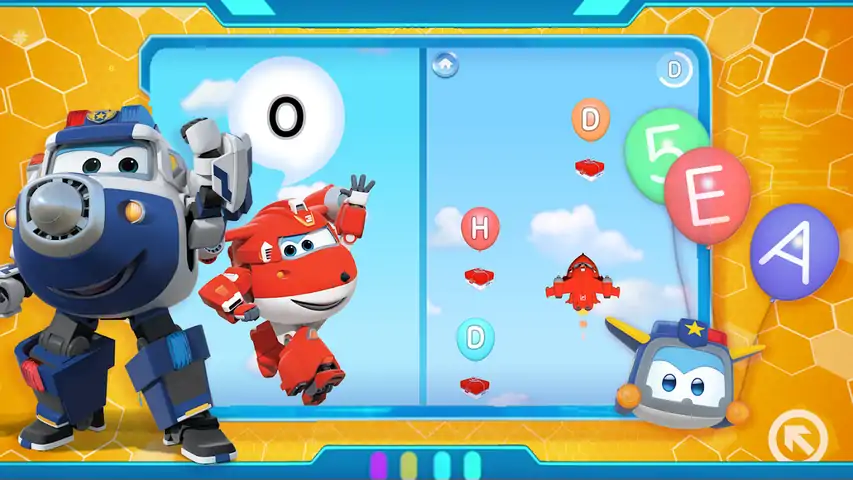 加入您最喜欢的卡通超级翅膀游戏和学习同时进行的惊人体验,这是幼儿冒险家的完美游戏!准备好通过不同的迷你游戏进行激动人心的旅行,这将使孩子们玩得开心并发展不同的技能! 在这个超级翅膀免费游戏中,孩子们将享受各种有趣的教育活动。在世界地图上找到不同的儿童迷你游戏并开始玩!这些是 Super Wings 的不同英语学习游戏: - 抓住包裹 - 绘画博物馆 - 有趣的比赛 - 存储卡 - 查找对象 - 博物馆迷宫 - 饼干店 - 障碍迷宫 - 拼图 在每个游戏中,儿童和婴儿都会发展不同的技能,例如想象力、记忆力或视力。现在是时候享受惊人的免费超级翅膀飞机教育游戏,帮助幼儿和婴儿积极学习了。 每个 Super Wings 儿童迷你游戏都是娱乐和教学的独特挑战或难题: - 获取包裹:帮助杰特收集他需要的所有包裹。一个学习数字和字母的绝佳教育游戏。 - 绘画博物馆:在这个有趣的绘画游戏中,孩子们可以尽情发挥想象力,为他们最喜欢的超级翅膀角色涂色。 - 有趣的比赛:在沙漠赛车中,谁将第一个到达终点线?孩子们必须努力加速并展示他们的驾驶技巧才能获胜! - 记忆卡:经典游戏,记住每张卡的位置,以匹配具有相同图纸的卡。小朋友们将能够通过匹配超级翅膀角色的卡片来测试他们的记忆力并提高记忆力:杰特,天空,保罗等等! - 查找对象:是时候搜索并找到隐藏在这些卡通不同场景中的对象了。 - 博物馆迷宫:您能解决迷宫并找到出口吗?注意,不要在途中迷路