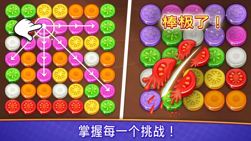 在这款适用于 Android 手机的令人上瘾的逻辑游戏中切健康蔬菜 片! 享受 1000 多个关卡的美味蔬菜拼图 乐趣。 如果您是逻辑游戏的爱好者,您一定会爱上这款独特的游戏。切蔬菜:逻辑益智游戏 挑战你的大脑和反应能力! 凭借简单而引人入胜的游戏玩法,这款逻辑谜题会让您玩上几个小时。切蔬菜:逻辑益智游戏 视觉上赏心悦目的画面,提供了惊人的愉快的体验。 如果您正在寻找适合成人的逻辑谜题,Veggies Cut 是您的正确选择。 玩这个逻辑游戏的快速指南: 这款逻辑益智游戏的主要目标既简单又具有挑战性; 用刀 切出相同的蔬菜片。 您可以沿直线水平、垂直或对角线切蔬菜。 在这个蔬菜配对游戏中切蔬菜可能很棘手,所以您需要聪明地玩这个逻辑游戏。 在这款蔬菜配对游戏中畅玩并享受经典游戏模式。 您可以选择不同的网格大小。 更大的网格有更多的蔬菜要切。 您需要使用战略思维来计划您的行动并找到每个蔬菜拼图的方法。 如果您在逻辑益智游戏任何地方卡住了,您可以使用提示加电来帮助您。 切蔬菜:逻辑益智游戏 具有一系列的特点,让它变得有趣和有趣: - 这个逻辑游戏包含了色彩鲜艳和舒缓的蔬菜片图片。 - 你不需要互联网连接就可以玩这个有趣的匹配 3 拼图。 - 每天,您都可以发现惊喜礼物,包括免费金币、提示和道具,帮助您解决逻辑拼图游戏。 - 当您赢得这个连接和匹配拼图的级别时,您将获得奖励 和金币。 - 这款逻辑游戏的独特功能是能够撤消动作,当您不小心切错蔬菜并需要更正它们时特别有用。 - 当你玩这个蔬菜配对游戏时,你可以听到令人满意的切片声音和其他音效。 - 您可以用您选择的语言来玩匹配拼图。 - 一键分享这个有趣的逻辑游戏给你的朋友和家人。 - 您可以选择不同的棋盘设计,并根据自己的喜好定制您的逻辑游戏。 如果您正在寻找有趣的逻辑益智游戏和脑筋急转弯游戏,这款逻辑游戏将用健康的蔬菜满足您解谜的渴望。 Veggie Cut 既有轻松益智游戏,也有硬益智游戏。 切蔬菜会让人上瘾,通过参与这些配对游戏,您可以在获得乐趣的同时磨练您的认知能力。 今天就试试这个配对拼图,看看您能得分多高!你会发现这个蔬菜三消游戏是最好的适合匹成人三消益智游戏和儿童。 无论您是在寻找一种快速打发时间的方式,还是在寻找一款逻辑游戏来测试您的智力敏锐度,这款免费的逻辑游戏都是您的完美选择。 切蔬菜:逻辑益智游戏 是一款非常棒,适合喜欢具有彩色图形挑战性益智游戏为成人。 它是 2023 年配对游戏之一。立即下载这款新的蔬菜逻辑益智游戏,立即开始切绿色蔬菜