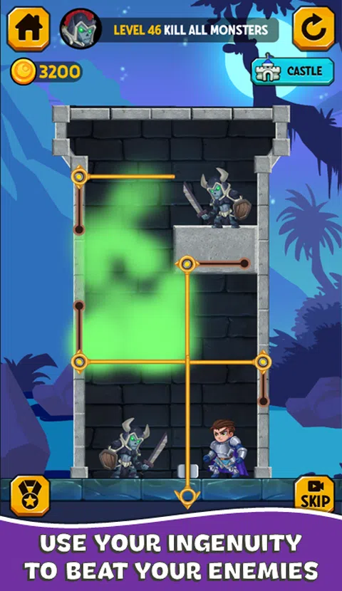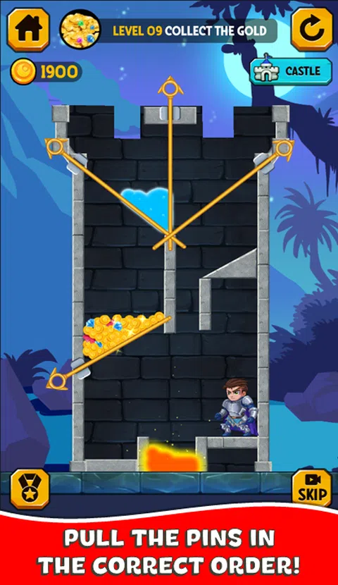 按正确的顺序拉动图钉以解决逻辑难题,这样我们的英雄就可以逃离危险并拯救公主。 一个小错误都可能导致英雄或公主丧生。 在途中,您将不得不采取隐藏的宝藏,保护自己免受缠扰您的狼和怪物的侵害。这样,您将能够从龙中拯救公主。 为了实现目标,您必须通过投掷熔岩和毒气药水、切断绳索、阻挡路径来消灭敌人,从而将公主从可怕的怪物中救出。 当您解决难题时,您将获得奖励,这将使您能够建立自己的王国并解锁新的英雄。 许多任务等待着你。 听起来很简单,拼图使用各种物体和障碍,您需要熟悉这些物体和障碍,以了解如何解决每个级别。 特点: - 免费,随时随地玩。 - 适合所有年龄段。 - 这是通过解决谜题来训练和锻炼大脑的好方法。 - 高品质图形、声音和动画。 - 很棒的游戏体验。 - 数百个关卡等待着您。 如果您喜欢测试大脑的谜语和益智游戏,请不要再等待!立即下载应用程序,享受这次冒险的乐趣! * 不要忘记留下评论 * 如果您喜欢这款游戏,请不要忘记在 Google Play 上留下评分和评论,您的贡献将使我们能够继续免费开发新游戏