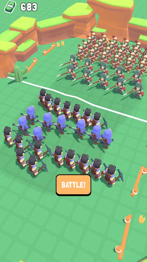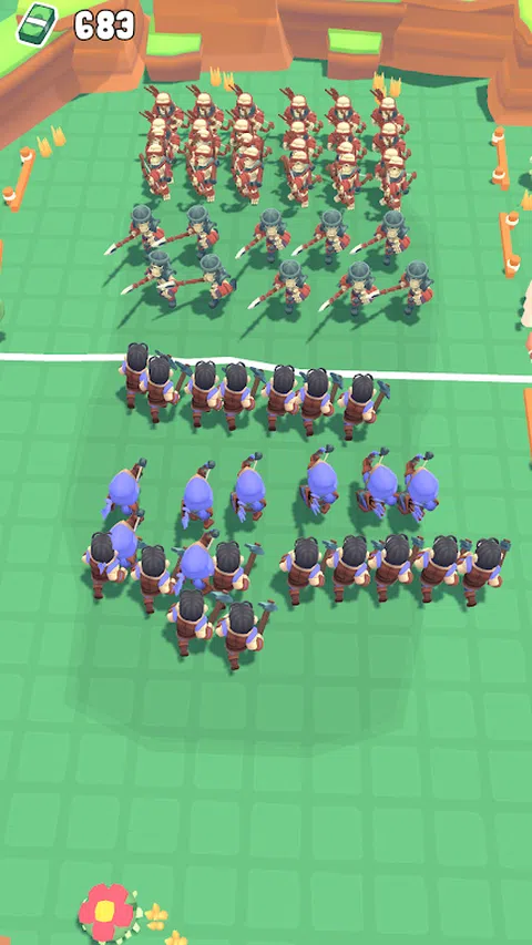 在给定的时间内收集尽可能多的士兵! 绘制您的战场战术! 与不同的作战! 在游戏的第一阶段,您必须在限定的时间内收集士兵。在第二阶段,您将绘制防线并与不同的敌人作战。如果您输了,请不要担心!您可以使用在战斗阶段赚到的钱进行升级,并在下一次尝试中壮大