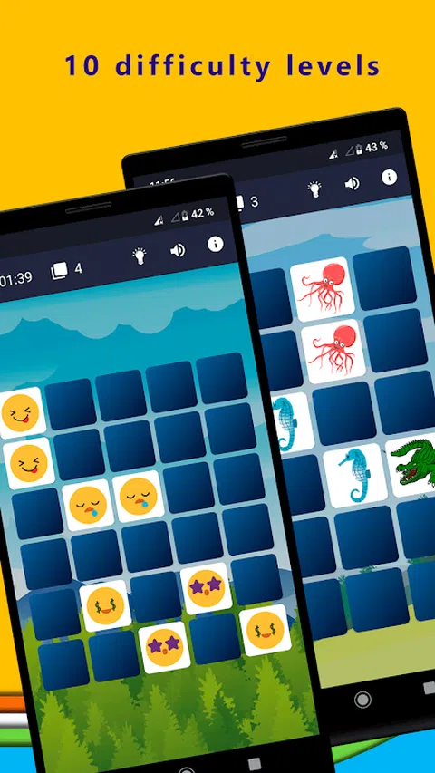 ? 图片游戏:配对 ? 在这款经典的图片和大脑训练游戏中玩得开心纸牌匹配。 教育和视觉游戏,训练您的大脑保持力和思维。 游戏的目标是在每个级别中找到所有相同的卡对,以便面板上没有未配对的卡对。 单击您想要的卡,然后找到它的对。 适合所有年龄段和几代人的理想和儿童。 13 个不同的类别 供您玩乐:夏季 / 动物 / 服装 / 食品 / 运动 / 植物 / 水果和蔬菜 / 音乐 / 旗帜 / 交通标志 / 车辆 / 表情符号 / 圣诞节。 高级内容:可爱 :企鹅 / 树懒 / 宇航员 / 考拉 / 熊猫 / 独角兽 / 狗 / 猫 / 猴子 / 兔子。每个类别中可爱而相似的角色,使大脑挑战更加困难。 2 种游戏模式。放松模式和时间攻击模式 。如果您想以自己的节奏玩而不着急,请选择放松模式。如果您喜欢挑战,请尝试时间攻击模式。在时间用完之前通过关卡! 10 个难度级别 可用。 各种随机图像,以增强视觉刺激。 离线游戏。无需连接到互联网。 通过这款记忆力强的图片游戏练习和提高您的技能。您练习寻找配对的次数越多,您的保持力就越有效。 锻炼大脑,提高注意力和视力? 现在玩“图片游戏:配对”。 免费下载