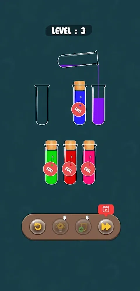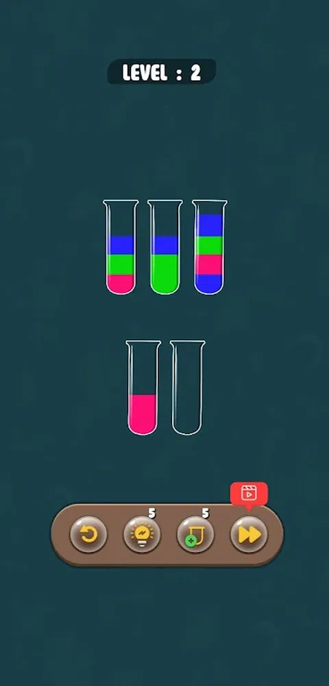 Color Sort 是一款令人上瘾的水分类谜题,其丰富多彩的设计和简单的游戏玩法令人着迷。 每个级别都会为您提供几个装满不同颜色液体层的瓶子。任务是按颜色对液体进行分类。轻击一个瓶子,然后轻击另一个,将顶层从一个倒到另一个。当每个瓶子只装满一种颜色时,你就通关了。 这款水分类游戏有助于放松身心,同时还可以使大脑工作 - 享受愉快时光的组合