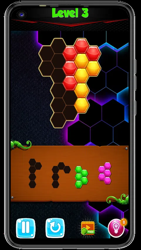 六角方块拼图游戏,只需将所有六角形方块拖放到棋盘上即可。规则很简单:一切都必须合适!美国用你的智慧来解决拼图。 特点: - 最简单的游戏动作:拖放!