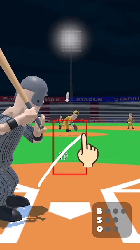 让我们仔细观察球并画一条线。 如果你画得好,你可以击中击球或本垒打并赢得比赛