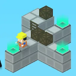 在四个对角线方向上滑动,以在各自的方向上移动角色。用面向那个方向的金色盒子滑动将推动它,梯子会让你向上移动。将箱子拿到绿色球门图块以获胜