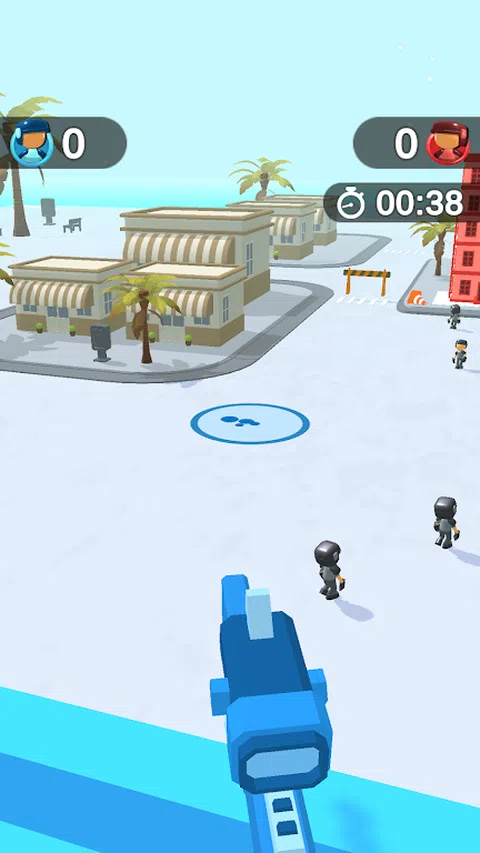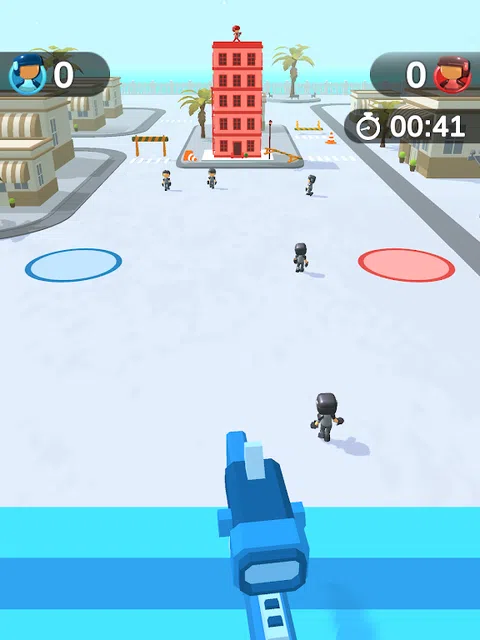 你和你的对手在摩天大楼的,城市中有很多流浪者,用彩弹枪给他们涂色并收集你的团队。尝试尽可能快速准确地射击,因为对手会尝试这样做。当你画某人时,你将他收集到你的团队中,尝试尽可能多地画画以赢得最后的战斗