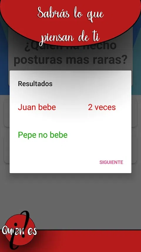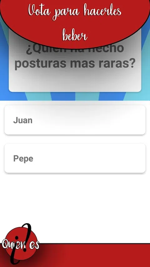 欢迎来到谁。 一旦每个人都为他们给你的每一分投票,你必须喝一次。并重新开始。 好好享受