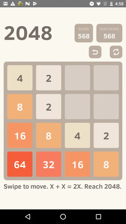 加入相同的数字,他们加倍。继续前进,直到你到达2048瓦