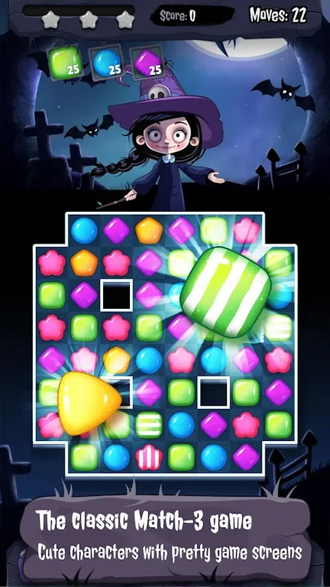 当黑暗的死神到达并在我们的领土上肆虐时,女巫将使用她最喜欢的糖果作为武器推翻死神并将他赶出去。女巫需要你的帮助。您可以用手指在智能手机的触摸屏上滑动来拯救世界。 采用经典的三消游戏模式,以及多种创新元素。 挑战游戏中的新关卡,开启新的游戏场景。 让我们与女巫战斗。 幸运轮每天都有免费道具,每天登陆都会给你免费道具和幸运。 ●海量关卡等你。 ●达成目标,获得巨额奖励。 ●经典的三消游戏。一旦开始,就无法停止。 ●和你的朋友一起去看看谁更厉害! ●可爱的角色,漂亮的游戏画面