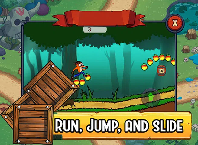 Crashing Fox Adventures 是一款具有挑战性的 Crash 游戏,征服 10 个不同的世界,你将帮助 Bandicoot。是时候下载并与我们的 Fox 一起到达新世界,尝试获得乐趣并帮助在 10 个不同的超级冒险危险任务世界中撞车和冲刺,以拯救袋狸。您将在狐狸中拥有完整而简单的控制,因此使敌人崩溃并避开它们。 Crashing Fox Adventures 是一款易于运行的bandicoot_adventure 游戏,具有惊人的简单平台!如果你喜欢 bandicoot_games,你可能会喜欢这个。 Crashing Fox Adventures 必须通过许多障碍,因此要通过每个级别,您必须快速、避免危险、跳跃和滑行 下载 Crash Fox Adventures,玩得开心,拯救狐狸并将他带到安全的地方