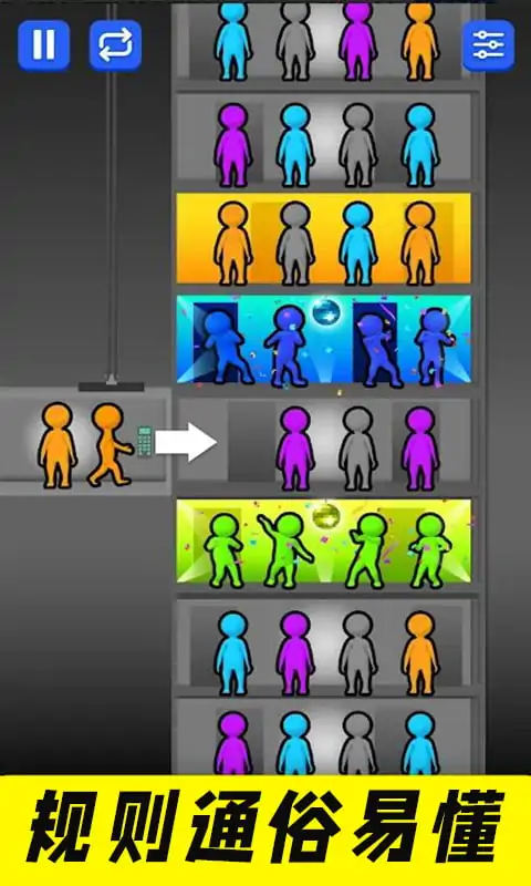 一款非常烧脑的休闲游戏。在游戏中,玩家需要控制不同颜色的橡胶人,快速判断人的类型,并将不同的人分配到指定的电梯。因为每个人去的地方不一样,坐的电梯和楼层也不一样,所以你需要在规定的时间内完成任务。暖心的朋友们,快来和我一起玩吧。 游戏特色 1.如果乘客有紧急需求,玩家需要抓住一切机会满足他们的需求。 2.只有在规定时间内完成任务的人才有资格获得相应的奖励。 3.遇到的各种电梯故障需要玩家尽快解决。 4.作为一名专职调度员,我可以更好地运用智慧和策略将乘客分配到不同的电梯。