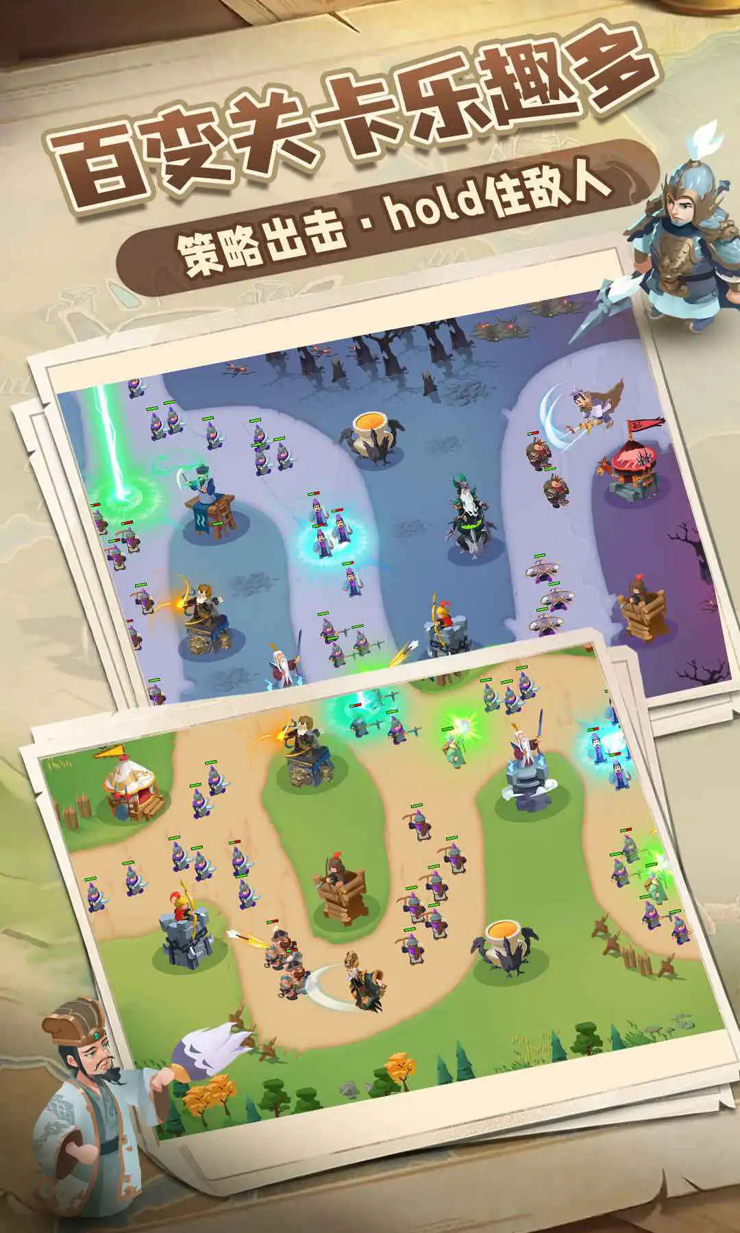 《向前冲》是一款三国题材、架空历史背景下的新型趣味塔防手游,融合了模拟经营、塔防、SLG、卡牌、肉鸽等玩法,游戏角色Q萌诙谐,核心塔防战斗以4种塔(兵、法、箭、炮)为基础策略。在资源丰富的三国版图上,你将成为初出茅庐的主公,指派不同技能的英雄,自由组合阵容,抵御敌军入侵,守护领地的安全!