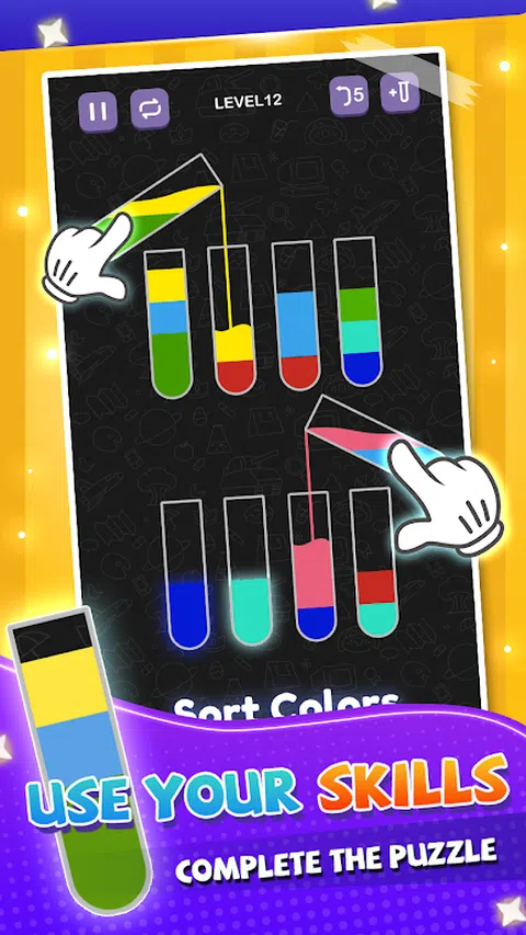 触摸任何玻璃瓶以将水倒入另一个瓶中。 规则是,如果水与相同的颜色相连,并且玻璃瓶上有足够的空间,则只能将水倒入另一个瓶子中。 - 尽力而为,不要陷入困境。不用担心,您随时可以重新开始。或使用帮助添加新消息。 特征 - 简单的单指控制。 - 1000 多个独特且不断增加的关卡 - - 无限时间;您可以按照自己的节奏享受水分类拼图 - 液体分类拼图