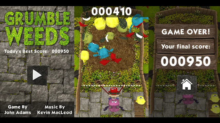 Grumble Weeds 是一款自由形式的三消游戏,具有 3D 图形和简单的一键式控制。 使用您的弹射器,将不同颜色的杂草发射到您的花园中,将它们聚集成三个或三个以上的组。杂草在与匹配的杂草相邻时生长,直到它们爆炸! 花点时间尝试在不溢出花园的情况下消灭尽可能多的杂草
