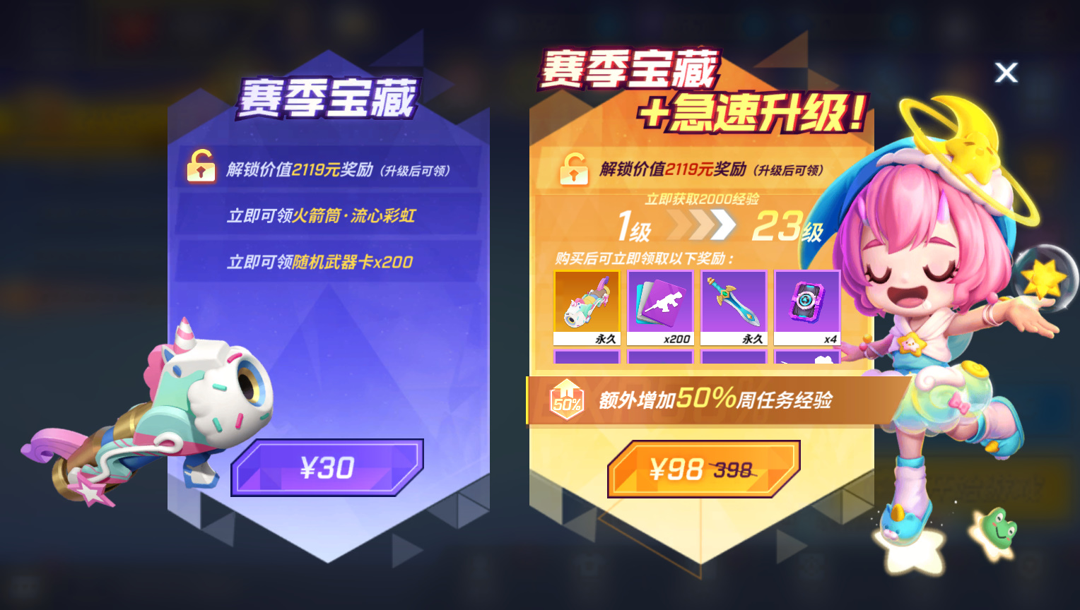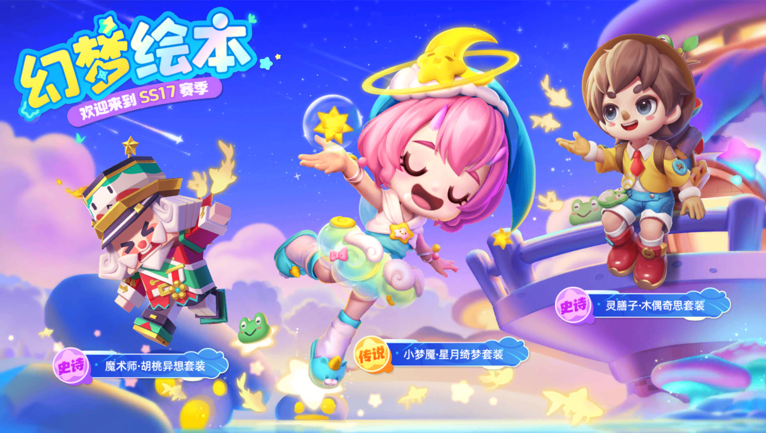 除了角色时装外,SS17赛季宝藏还包含2款梦幻色彩的角色头饰、2款角色个性搭配单件以及4款道具卡皮肤!