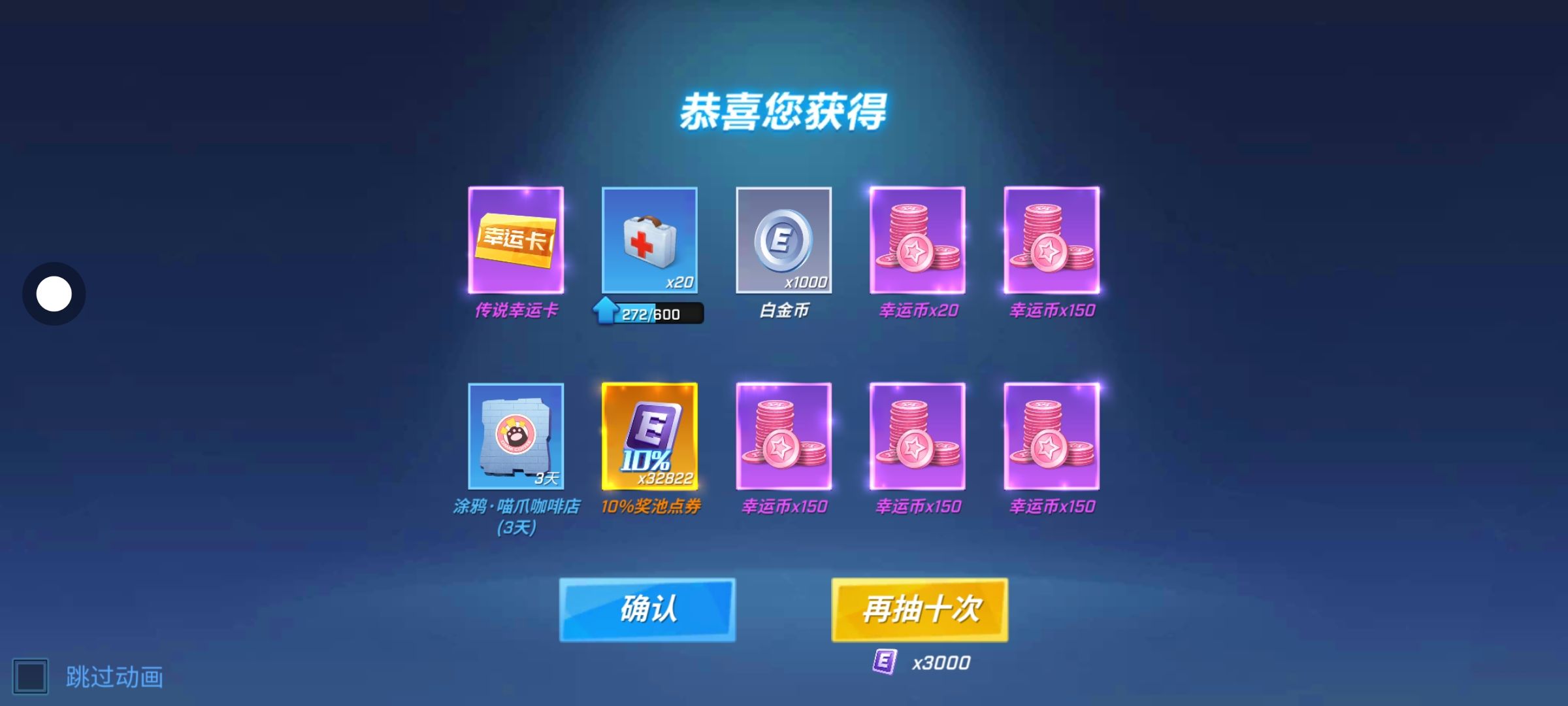 运气最好的一次两次10连中。