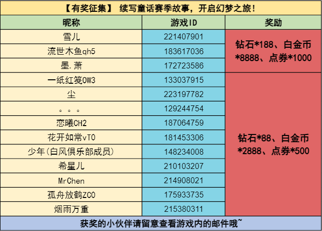 4.缺少平台或ID信息导致无法发放奖励,将视为放弃领奖。