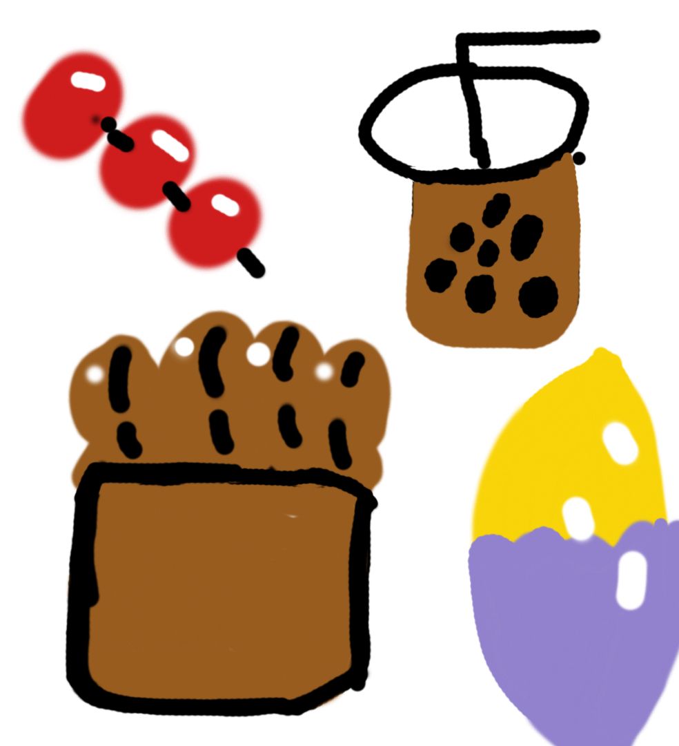 冬日必备4件套,冰糖葫芦,奶茶,糖炒栗子,烤红薯,有人为你画吗?画的不好,不喜勿喷🌚💦