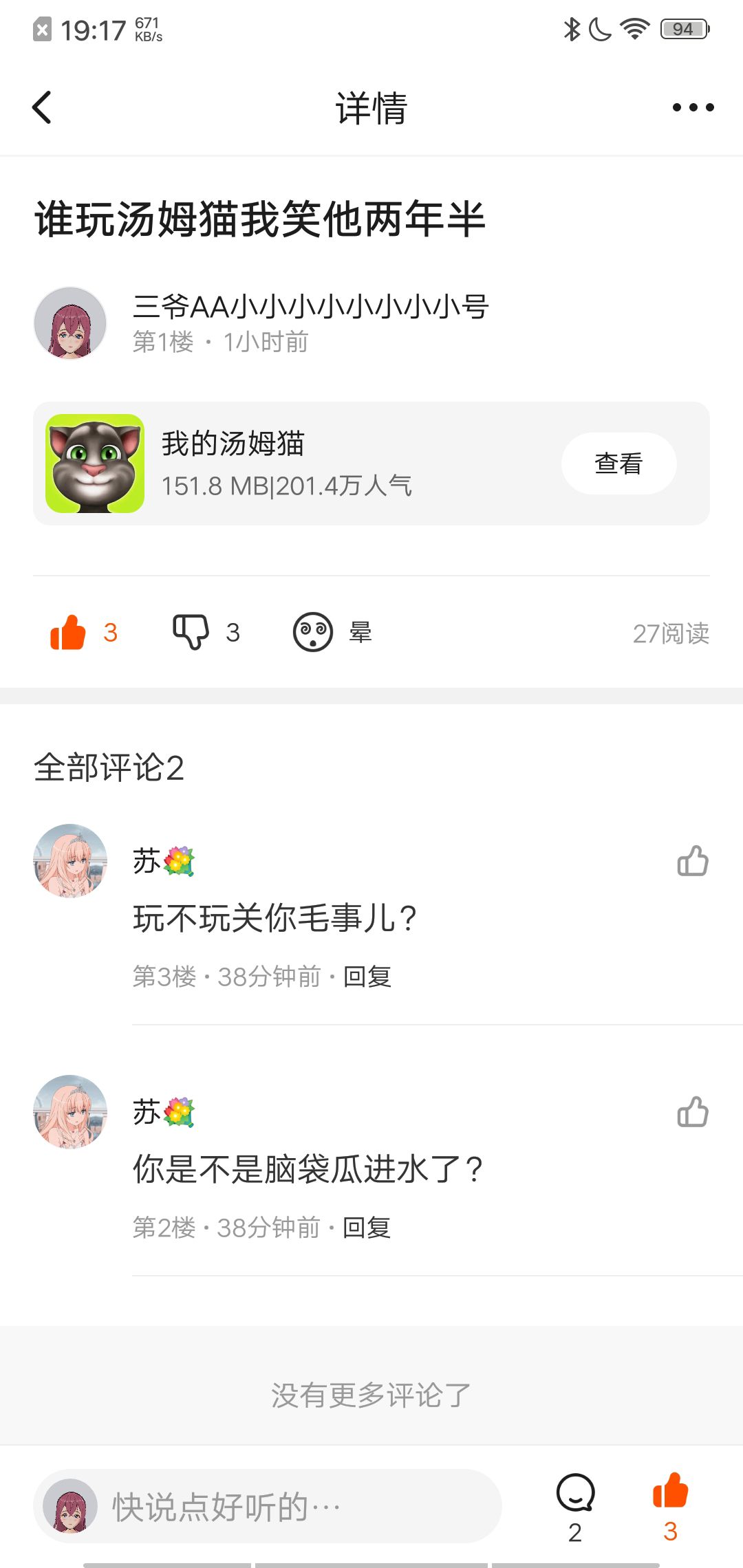 谁玩汤姆猫我笑他两年半