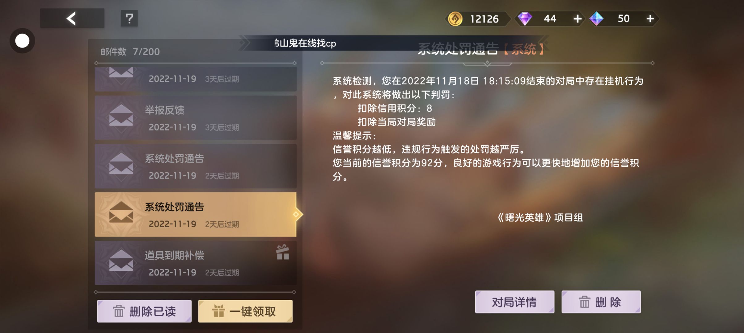 今天特别倒霉,信誉分都快被扣完了。