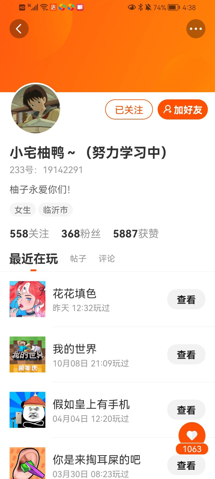 柚子的小号,大号根本登不上去