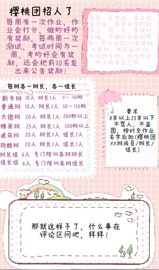 樱桃团招人了,有意见的私信我。