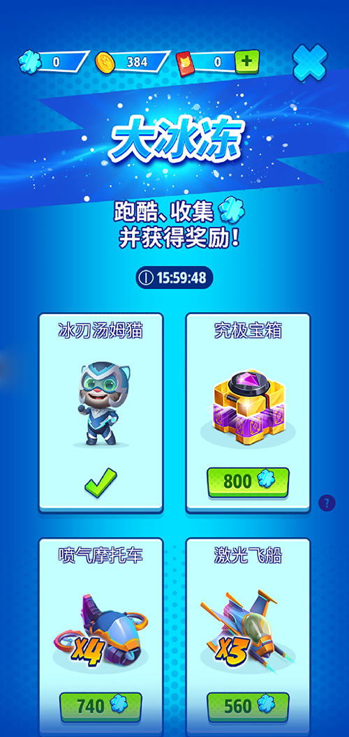 在这次《汤姆猫英雄跑酷》的11月新版本中,无论是“大冰冻”主题跑酷收集活动,还是“圣诞节”主题跑酷夺分挑战,都为大家准备了超级丰厚的奖励,包括钻石、金币和飞行器道具等等;还有“冰刃汤姆猫”、“火箭安吉拉”以及“红焰狗狗本”三款角色限定稀有皮肤,让大家充分感受冬日的小美好!