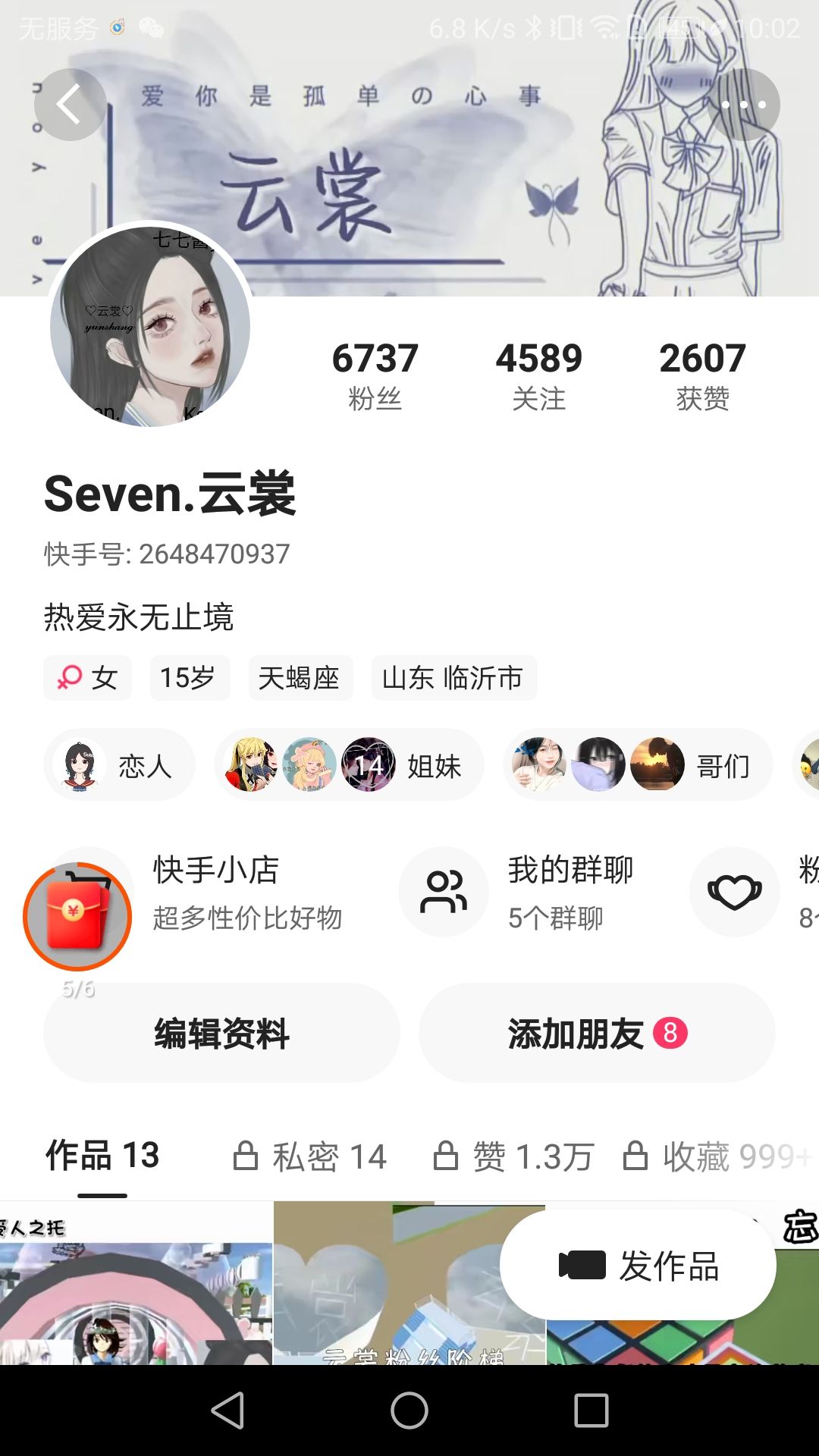 这是我的快手主页,嘤嘤嘤最近有点缺粉,你们谁在ks上关注一下我,这样的话我也会回关你