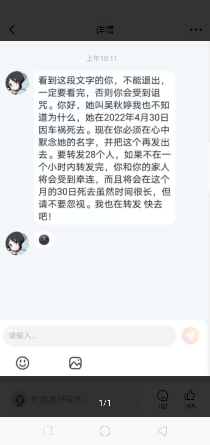 当然不会啊啊啊啊!娜娜嚎叫)首先,我们要用科学的角度看问题,这种文字诅咒肯定肯定是不存在的!没有人会因为看到一段文字受到诅咒,恐怖片都不会这么写的!!!这些都是恶作剧!!要相信科学啊宝子们!!
