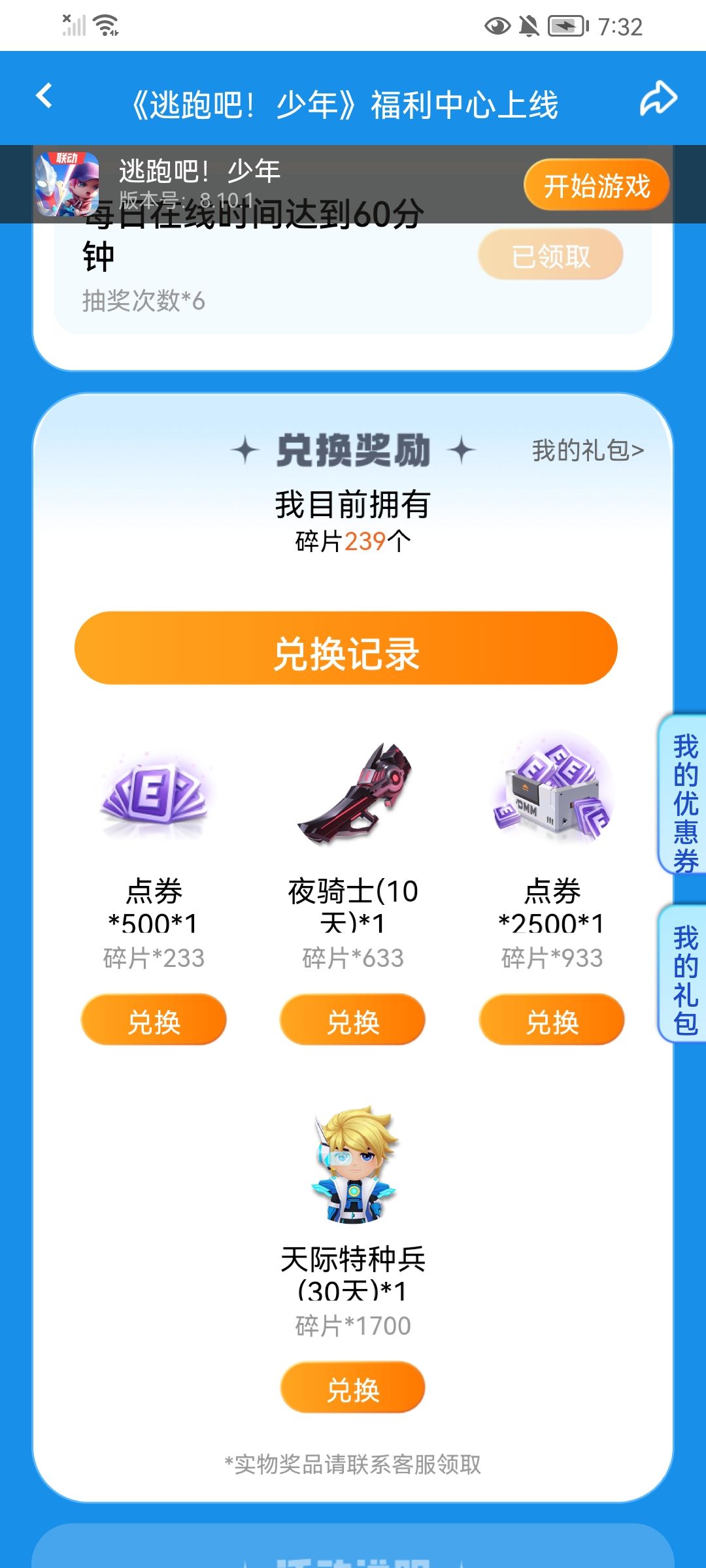 福利中心能换到500点卷,还是不错的。