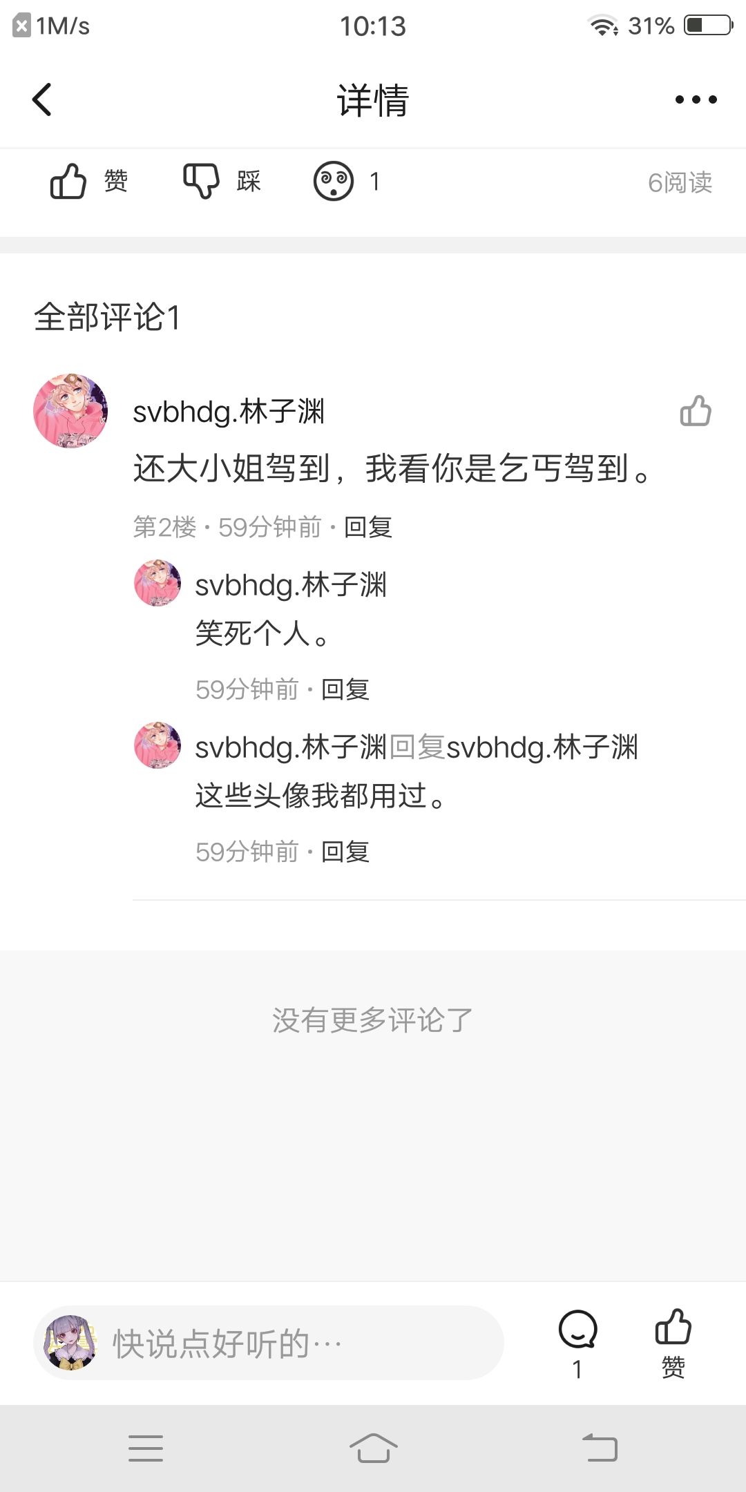 呃,希望你不要去喷我,我没什么想说的,我就发着玩,你也不至于吧?希望你能把评论给删了没有要说你,谢谢