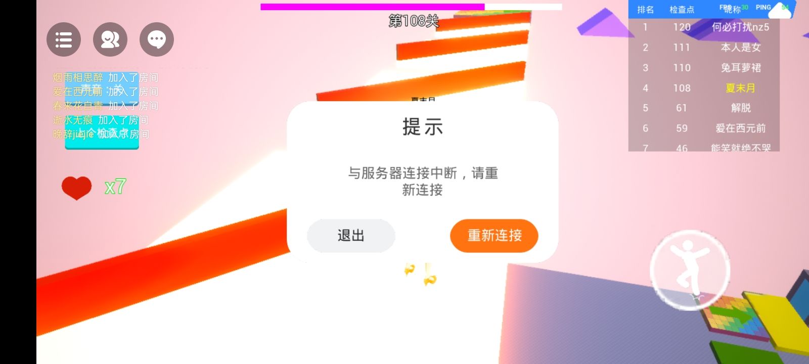 我马上就第一名了,他直接给我显示 请重新连接,我真的栓Q了。