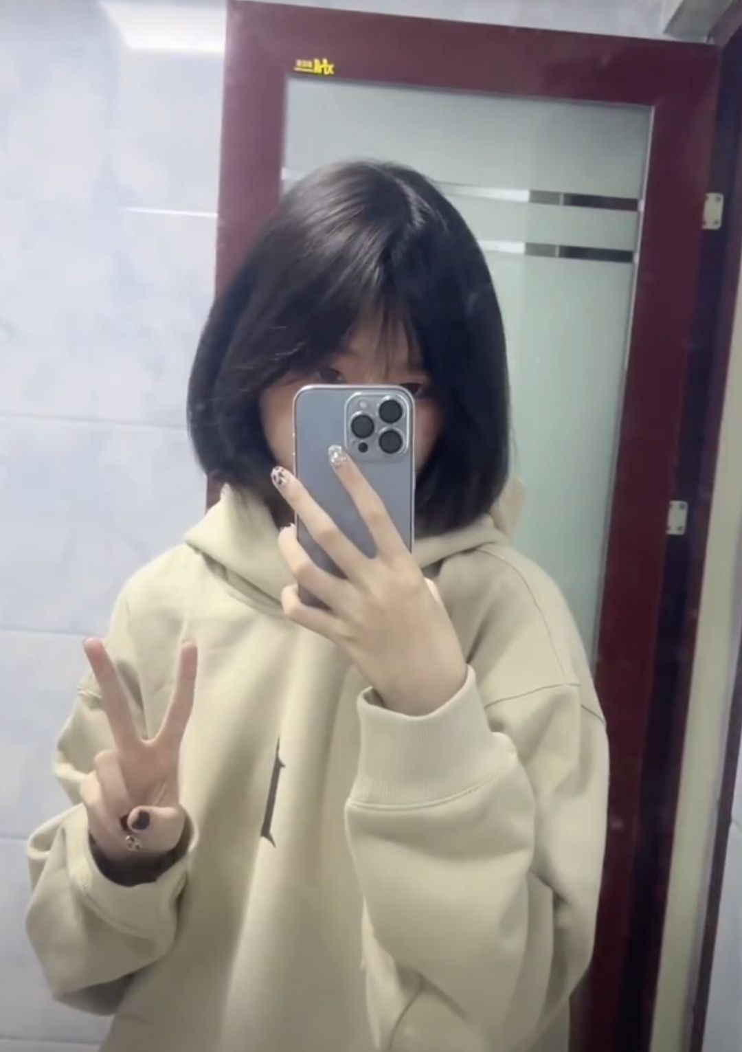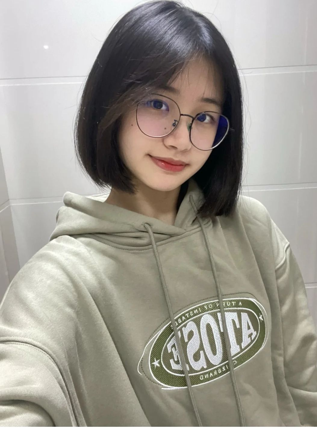 这是我剪短发,也有近视眼,又甜美