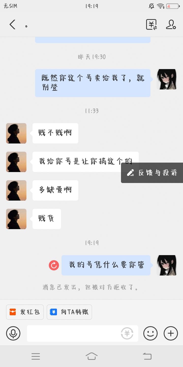 我给他了288,如果你想要这个号的话,就把这288元转给我,不然的话我举报他也行