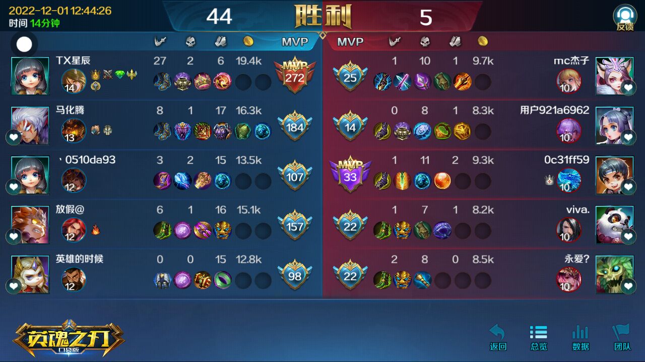 发个战绩,最上面的MVP是我。我是获胜方的。😃😊🌚
