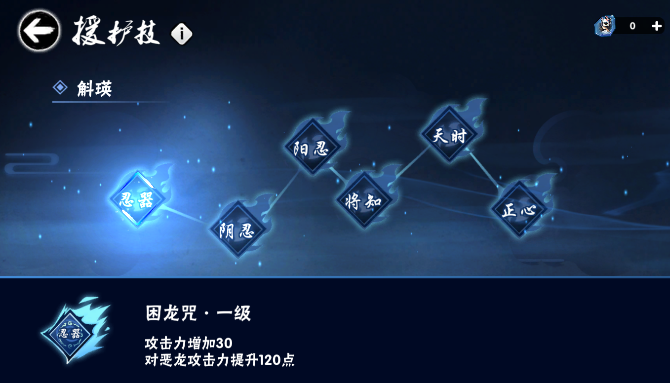 PS:作战忍者满天赋并且命格等级二以上,获得的参悟秘籍数量足以将辅助技升至满级。