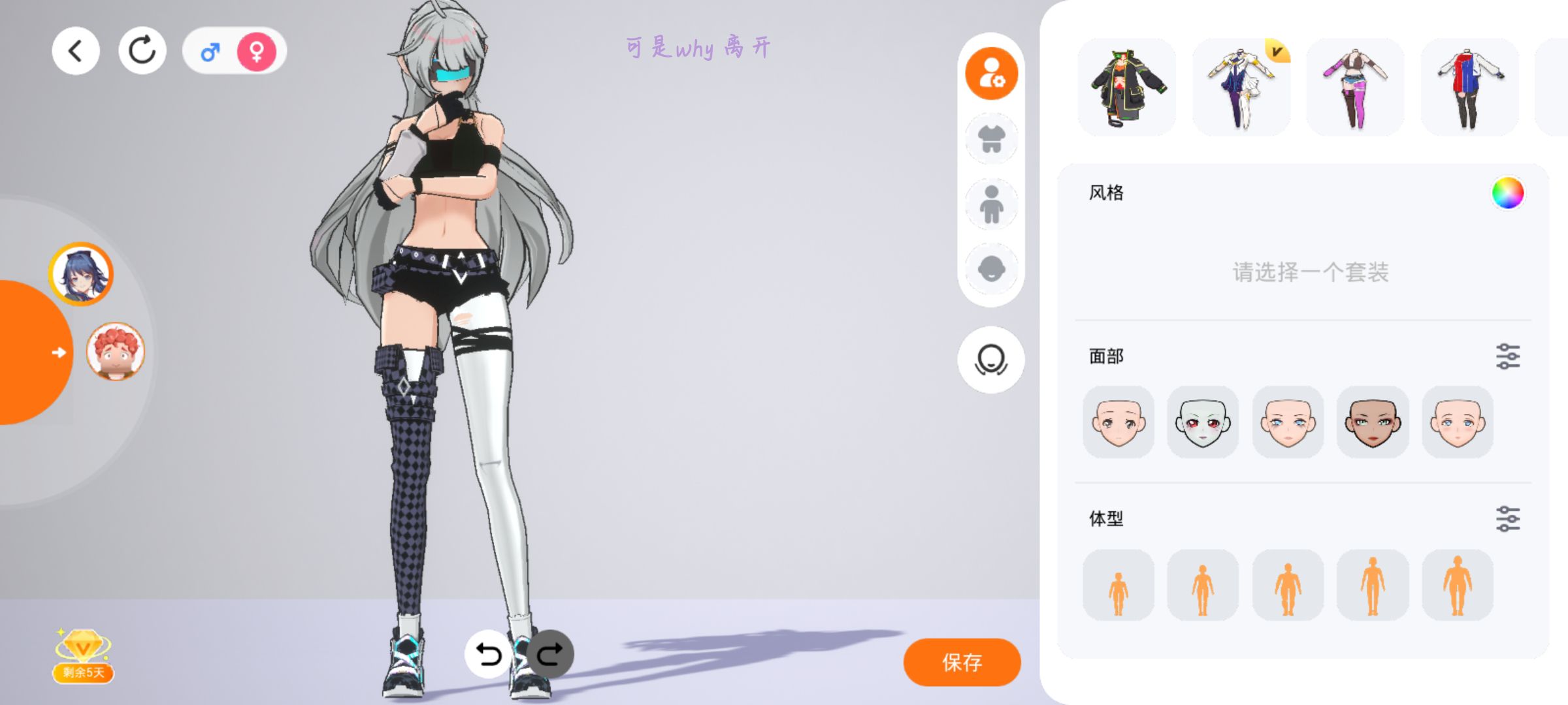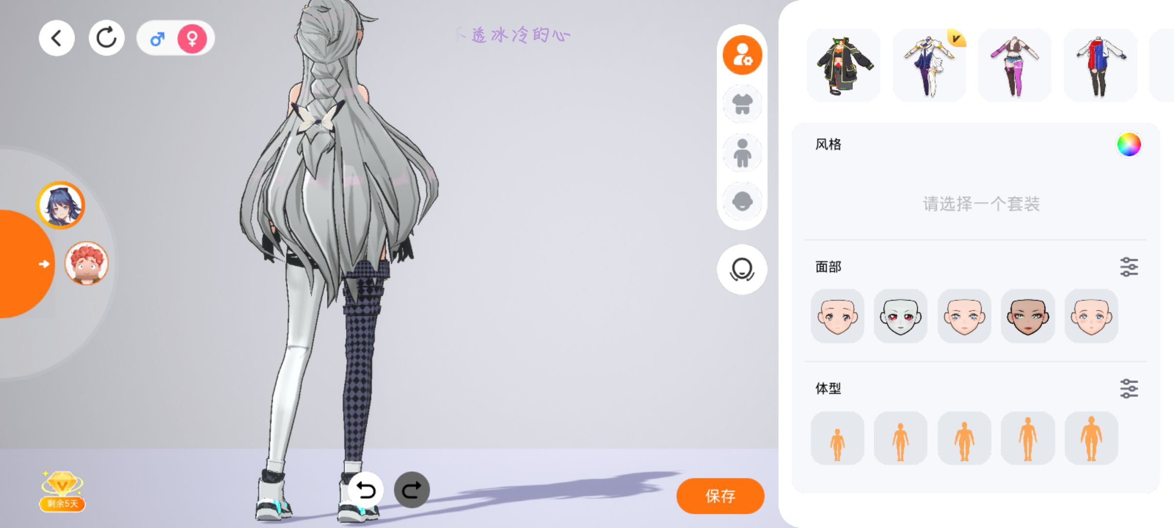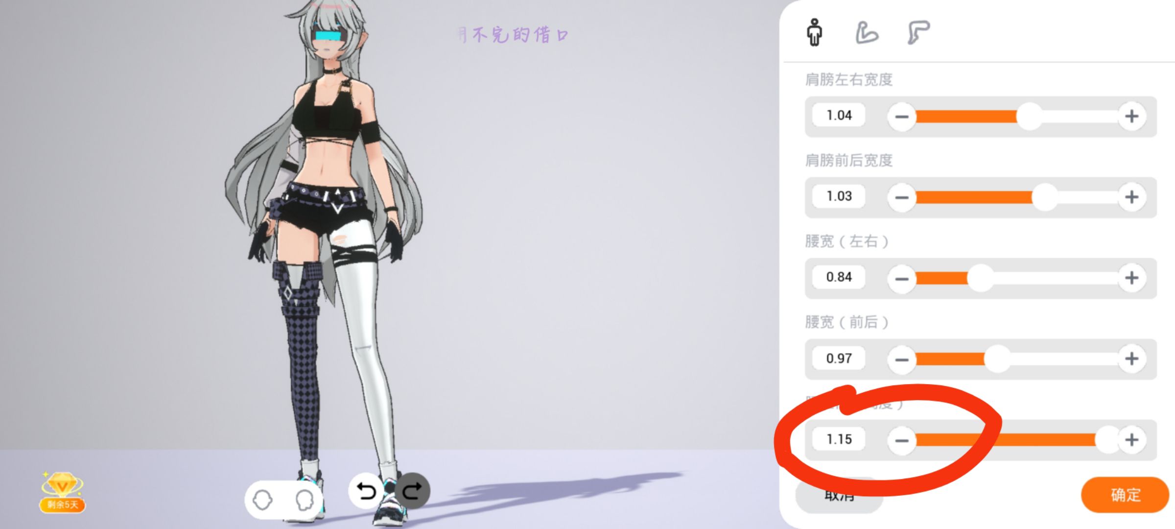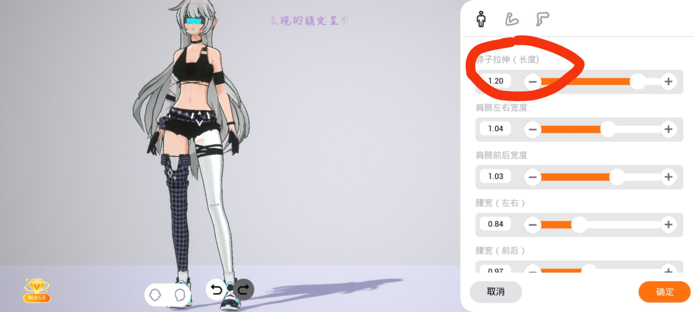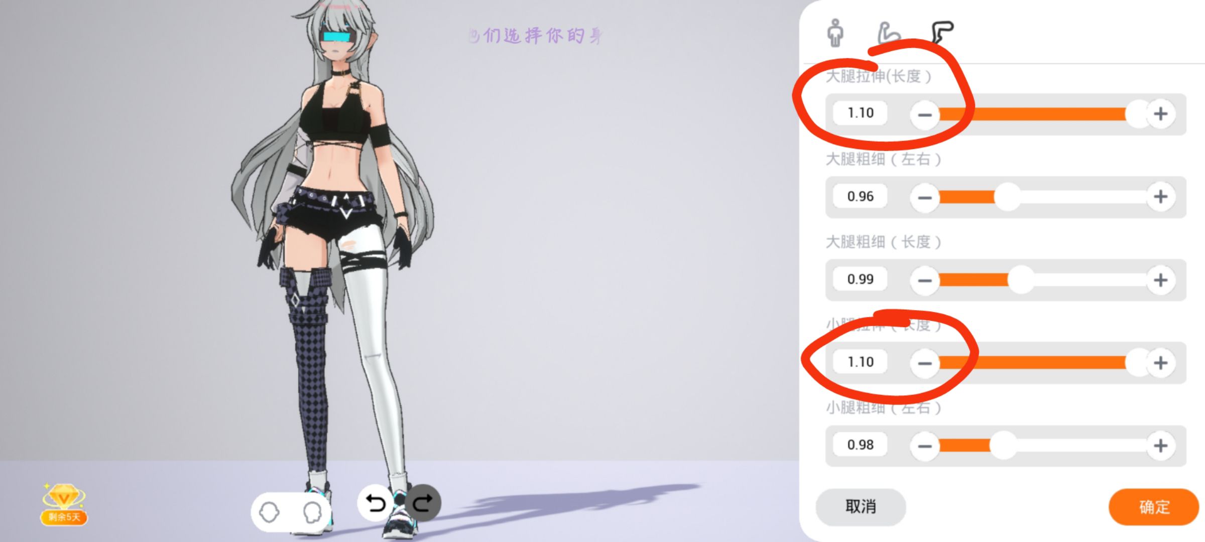 3.还有调节腿长度,上面四个键最后一个像水滴一样的是调节肤色的,可以根据自己喜好调节