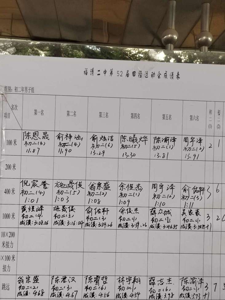 实力福清二中百米第4