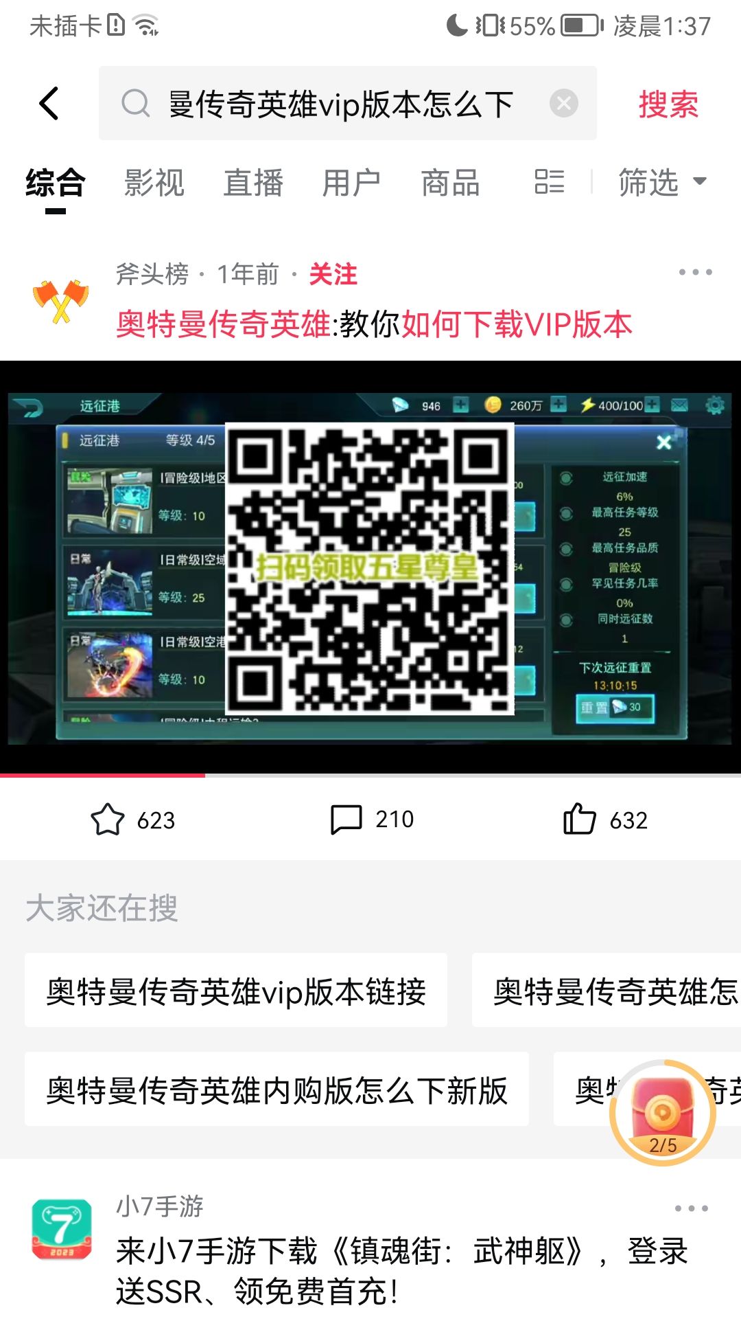 这是奥特曼传奇英雄VIP下载二维码,下载就送500钻石和五星直升卷。快来吧!