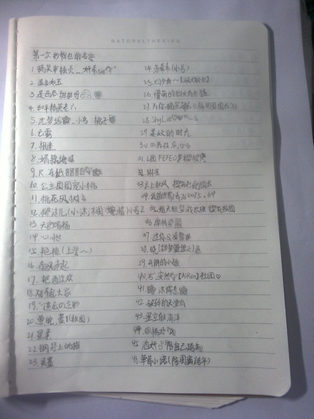 第一次抄粉丝的名字。。。